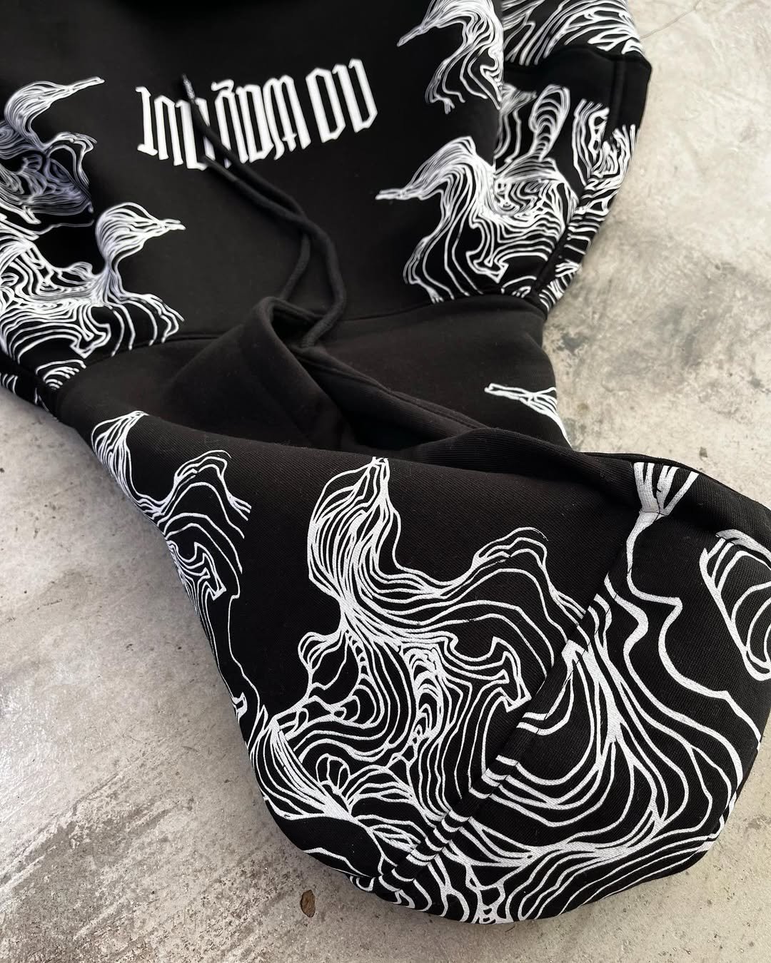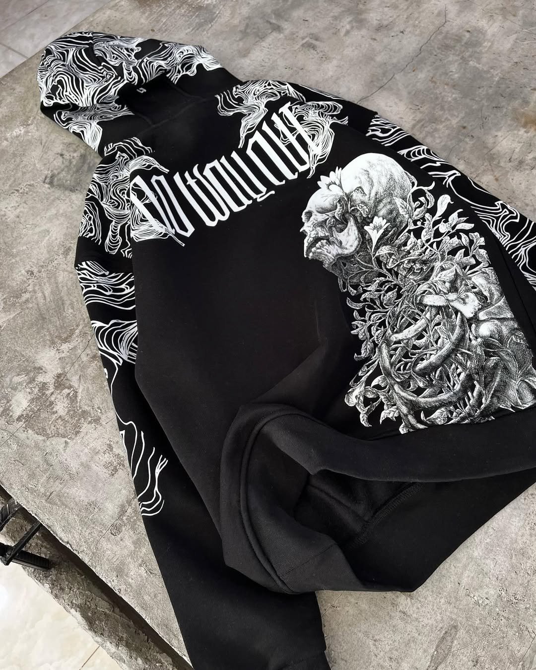 🔥 Skull ShadowWave Hoodie Size Chart (in Inches)