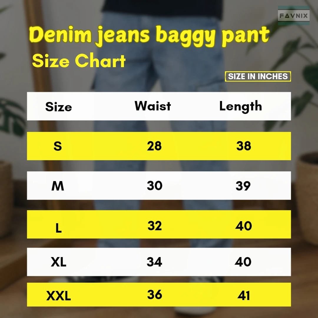 Measurements for Denim Baggy Pant (in inches)